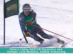 well. Why did it fly well? Because I threw it the right way." Gates are thin poles or squat stubs set on ski slopes through which skiers pass (if set in pairs) or turn around (if set singly) They are used to produce standard routes or courses for skiers to practice consistent turns, isolating some of the variables of a ski slope. "Turn here, Now!" the gate requires, a discipline that is important for skiers to acquire rather than shopping the slope for a better place to turn, which may not be found and at least will interrupt the rhythm of the skiing. Of course, gates are also used for racing, with elapsed times down the course being recorded and compared for the racers. Skiers should be at level 6 (parallel skiing) to fully enjoy running gates or racing, but they can start at almost any skill level if the gates are set for that level. Gates are set down a ski hill in various configurations to produce different kinds of turns and challenges. Sometimes they are closely spaced; other times far apart so that it is not readily apparent that they describe a linked set. In either case, gates are set by a trained person so the desired skier turns are required. And as each skier passes down the course, the track is grooved into a developing rut. The more skiers, the deeper and rougher the rut becomes. Thus the course is not available to those who are not part of the invited group. If in doubt about an invitation, find the course setter and ask whether the course may be run. Persons running gates are focused on their task and to do it well they cannot be distracted by slope traffic. Often the ski hill where the gates are placed is closed to the public, with signs stating that. To ski into such an area, or even near a course that is not closed off, risks a collision with a racer or training skier who does not expect you to be there. And, one never crosses the line of a ski course without at least first checking upslope to be sure the path is clear, and sometimes it is necessary to ask permission to cross and then wait until it is granted, if it can be.. "O.K., so running gates is good for skiing. But why race through them?", many skiers ask. They demur they are not competitive. Many of those who so state do not know themselves well. It often happens that once a skier runs a course and gets a timed result, the fires light and the course is run again and again, with requests for coaching to run it faster and beat ...(whomever). Many ski areas provide posted areas where gates can be run and times obtained, often for a fee. Many ski areas provide courses set daily with automatic timers. Usually there is a small charge by the resort to run these, but some allow ski school patrons to race free.