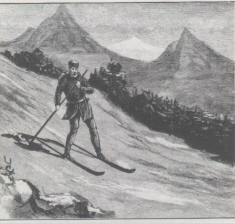 Just as now, early skiers used a pole or poles but their use was more for balance, to aid in pushing forward, and to create friction by dragging them in the snow to slow up. Surely these early skiers found they could slide down hills. But it appears to have been a very long time before they discovered how to turn skis while sliding. Logically, the very first turns could have been merely steps into a new direction, with multiple steps into the same direction to create greater turns, which we still do, too. What may have been the next generation of turns may have seemed more natural to those early skiers than do the ones we alpine skiers use today, for skiers of those earlier days first moved the outside hip forward of the turn-to-come, thrusting the corresponding ski along with it. (Today many skiers still find this move more natural than the one now used by virtually all advanced skiers who first move the inside hip and ski of the new turn forward, and for good mechanical reasons.) This early outside-hip forward turn came from the Telemark region of Norway. At another Norway area, another form of turning was soon invented in which, from a parallel ski position, the ski on the uphill side of the new turn was moved so its heel displaces uphill, called stemming, resulting in a skidded deflection against the snow that "pushes" the skier into a new direction. This turn came from the Christiania (now Oslo) area and so is called the stem christiania or stem christie. A more advanced turn can also be done without displacing the outside ski heel uphill and simply advancing the inside ski of the new turn while tipping the feet and body down the hill--the parallel christie. With modern skis we tilt our bodies a bit more down the hill, creating a higher angle of the ski's bases with the snow and minimizing or eliminating the skid, thus allowing the ski's designed geometry of shape to turn us-the carved turn. Sir Arnold Lunn, inventor of slalom ski racing, early 1900s. from