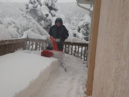 by Bill Jones, Ski Instructor "Hot, Cold, Dry, Wet, and Windy" is the title of a book published on mountain weather. This author has been the coldest while skiing and the hottest while skiing, and of course with every temperature in between. While it may be physically more comfortable to stay indoors, there is much to draw us into the outside world. Here we give tips on how to stay comfortable there, too, at least usually, and otherwise handle the mountain skiing environment. cleaning up after one snowstorm