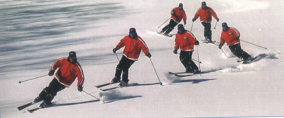 Because race courses are often set on hard snow areas, also see Skiing Hard Snow/Ice. But during snowy times, race courses may be softer, too, and then a soft touch is necessary to avoid pressing into the snow, causing more friction and a loss of speed. Take a look at the multiple-position photos of Olympian Phil Mahre and notice the last image, in mid-turn, the inside ski carrying the skier's weight and the outside ski off the snow. This is one specialized turn used in ski racing. In what situation would this turn be used, and what would it do?