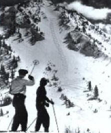 Powder 8s in 1947, photo by Clyde- Anderson, Skiing History, Sep-Oct 2014, p. 11