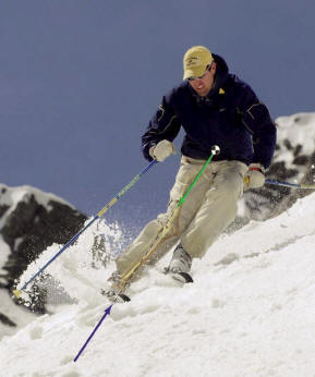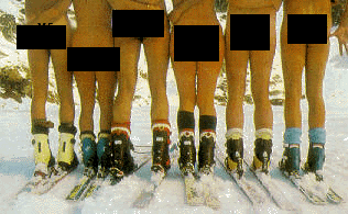 many cases cause the knees to co The female pelvis rotates more and more easily than that of the male. Do you suppose that's why hula and belly dancers are female? Of course, some might prefer to watch the female body rather than the male anyway, but this easier rotation of the female pelvis allows women more options in steering their skis with their legs, for once men have rotated their legs so far, their pelvis begins to turn, too, whereas a female can usually rotate the legs farther inside the hip joint of the pelvis, thereby steering the skis more effectively, before the pelvis begins to swing around. This can be seen in a ski exercise known as pivot slips, much like a hockey stop in which the hips are not rotated while the legs and skis turn underneath; women often outperform men in this maneuver, although general conditioning and flexibility also play a role. PSYCHOLOGICAL/CULTURAL FACTORS: Women are in general not as strong risk-takers as men. Like so many of these comparisons, this one has two sides. Because skiing is a risk-taking activity, women may at first shy from trying new maneuvers or advancing to more challenging terrain. But this gives them a better opportunity to learn the needed skills well rather than "getting ahead of oneself" on the learning ladder and then having to relearn the proper moves. Women often need more coaxing to try new situations than men and are more likely than men to sooner reach a level of challenge beyond which they would rather not proceed. Women are sometimes apt to back off their skill level so others, particularly men, seem better. This one is just too complicated to comment about, and of course will not apply to all women, especially competitive women. Could this be a manifestation of the cultural or biological role women have been said to be attributed with to support and nurture others? I do recall one lady, however, who was progressing well in her skiing skills until her male companion showed up and then she could hardly do anything on skis. Women are more likely to want to ski and/or learn with only with their own gender. This has led to all-women's classes at many ski areas, and there are also some all-men's classes. Some experiments in children's education have shown that not only do the genders do better even at an early age when separate, but also like the experience better. I know some women, however, who prefer to ski with men feeling they will be more challenged--and want that. Women are more likely to think a temporary failure is their "fault"; men that some external factor failed them. Of course, neither attitude is necessarily correct. In learning to ski, we simply fail until we succeed and follow the Nike footwear example of "Just Do It", although with a proper nod to self-preservation. Women may be more affected by cold. I have not generally noticed this except for one condition that occurs in some women (this factor also occurs in men but less often): Raynauds's Disease. In this the blood vessels of the hands and feet constrict inordinately in cold weather, even in mildly cold conditions sometimes, and these extremities may even turn blue. If you have this condition, seek medical advice on how to handle it. If it occurs and you hadn't known of the problem, warm up your hands or feet and/or go inside to get warm. Medications are available for the condition. CONCLUSION There are important differences in how men and women ski and learn to ski, but Women can ski at least as well as Men and Men can ski at least as well as Women. It has already been noted that women (as well as men) occupy ski school director and ski patrol posts at some of America's biggest resorts and are commonly found among the top skiers and instructors at a given resort. Another indication of the lack of gender bias in skiing is the following test: ski instructors were given photographs of both men and women racers in world-class training but in which gender could not be told from clothing, hair, or body form. The instructors were asked to identify who were the men and who were the women--based solely on technique. The instructors could not do it. There was more variation in technique among the men as a group and among the women as a group than there was between the men group and the women group! Cam women ski? Watch this YouTube video and you decide: exits. REFERENCES WOMEN SKI: Everything You Need to Know to Really Enjoy Skiing, by Claudia Carbone. World Leisure Corporation, Boston, MA. 1994. SKIING: A Woman's Guide, by M. Loring. Ragged Mountain Press, McGraw-Hill: Camden, ME. 2000. Website: "SKI LIKE A WOMAN: Snowsports Instruction and Events for Women": exits Can women ski? See the gal in the picture at right and you decide: